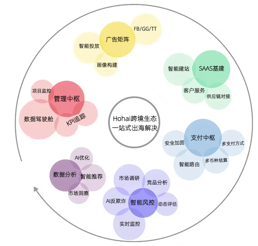HOHAI以技术为核心,自主研发了SaaS建站平台与支付网关系统,构建起覆盖“建站—收单—风控—管理”的跨境电商基础设施,助力商户轻松出海,加速全球布局: